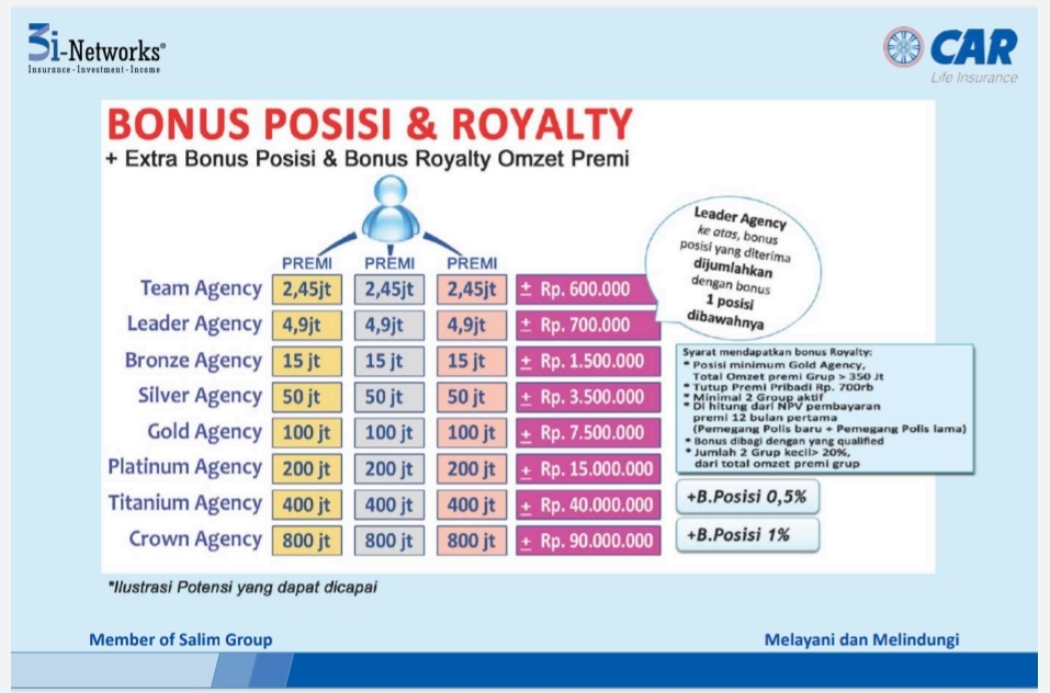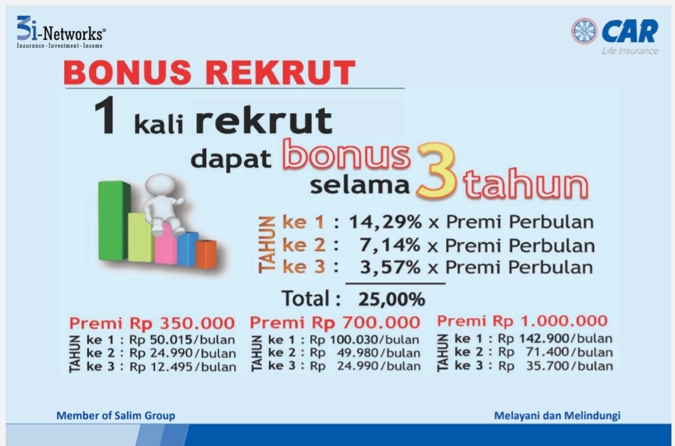 - Serta berbagai bonus prestasi sebagai agen asuransi berlisensi AAJI